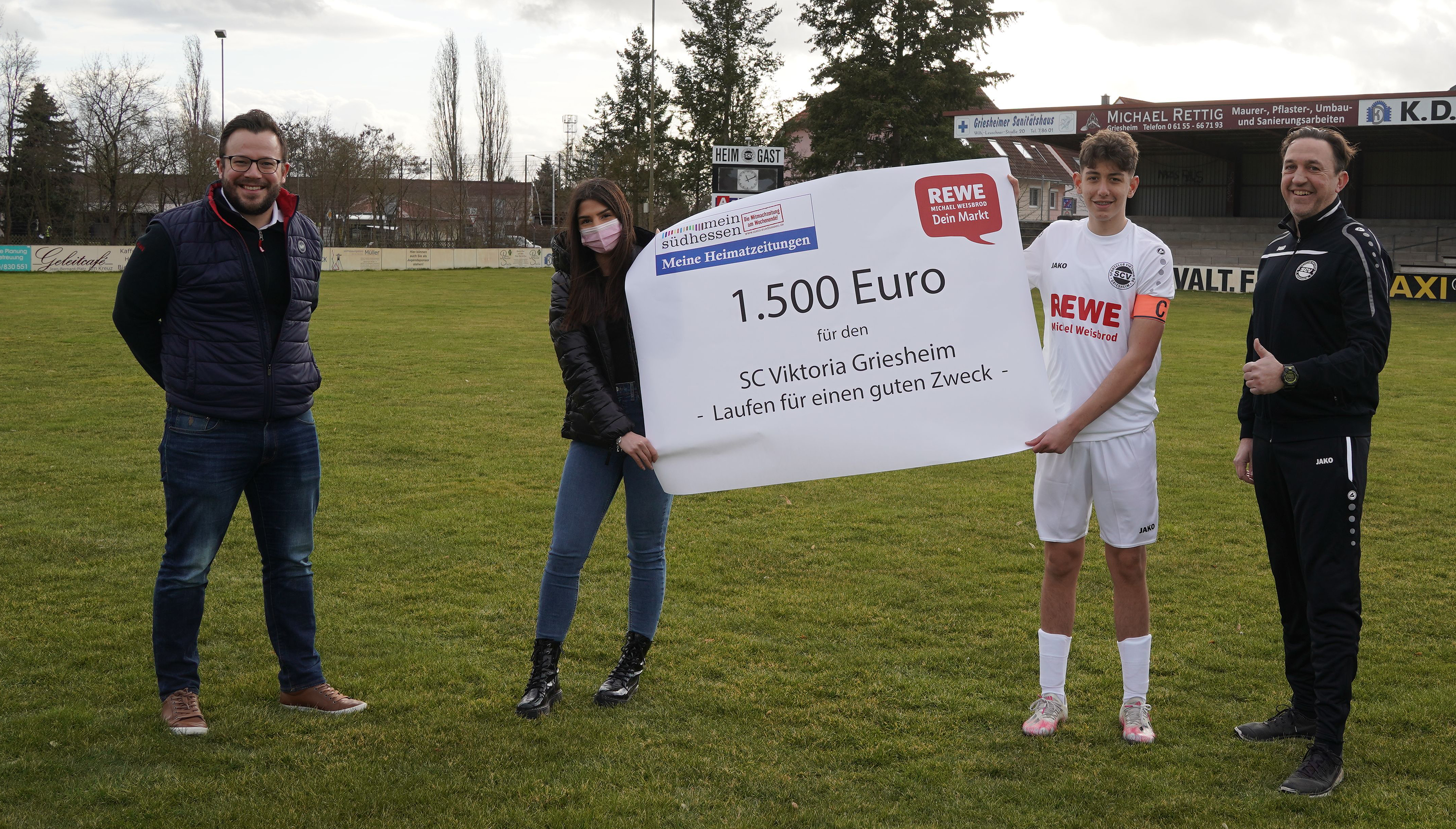 Die Hessenligaspieler der C 1 vom SC Viktoria Griesheim haben es geschafft und 1.500 Euro für den guten Zweck erlaufen. In der fussballfreien Zeit hatten sich die Viktoria Kicker das Ziel gesetzt innerhalb der vergangenen 2 Wochen 1.000 Kilometer zu laufen. Insgesamt haben die 19 Hessenligaspieler mit ihren individuellen Läufen im Aktionszeitraum 1053,1 Kilometer zurückgelegt.