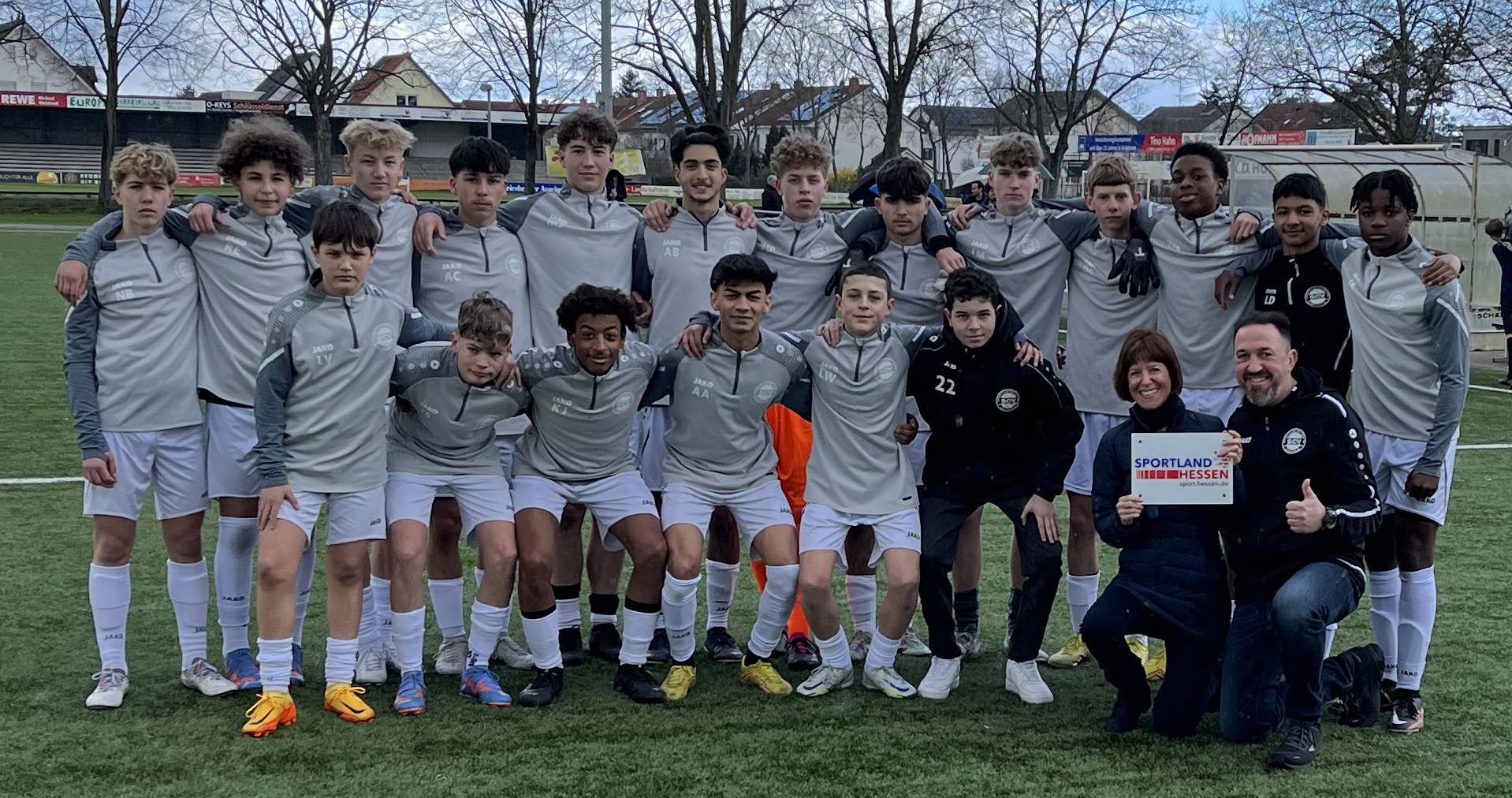 Landtagsvizepräsidentin Heike Hofmann zusammen mit der Hessenliga-C1 des Sportclubs